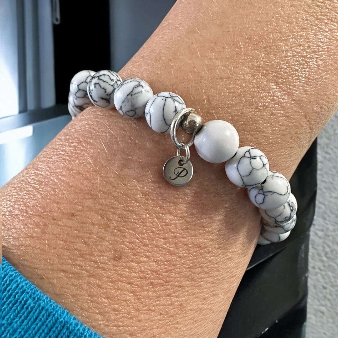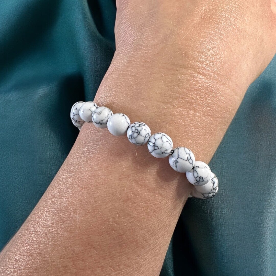 Ein klassisches Armband mit 8 mm Howlith-Perlen in alles Grössen verfügbar. Für Damen und Herren geeignet.