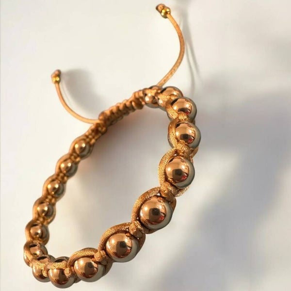 Verleihen Sie IhremLook einen Hauch von Eleganz mit unserem handgefertigten Armband aus goldfarbenen Hämatitperlen.Dieses exquisite Schmuckstück kombiniert die schimmernde Schönheit von Hämatit mit der kunstvollen Technik des Makramees, um ein einzigartiges und stilvolles Accessoire zu schaffen.