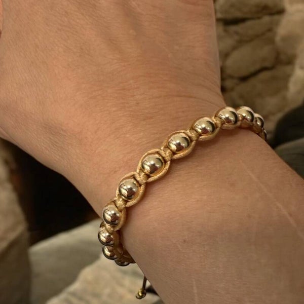 Goldfarbenes Hämatitperlen-Armband mit Makramee-Handarbeit