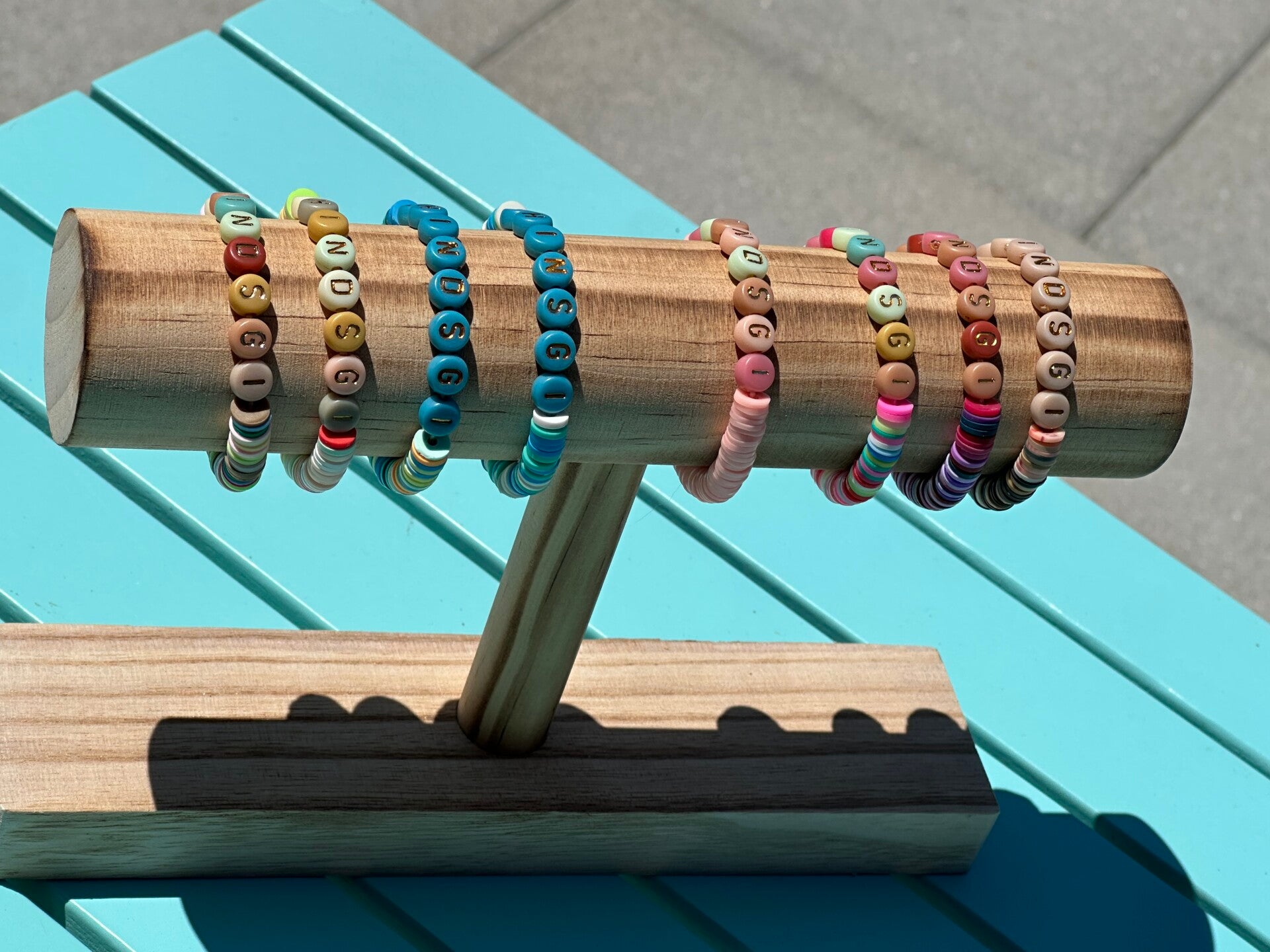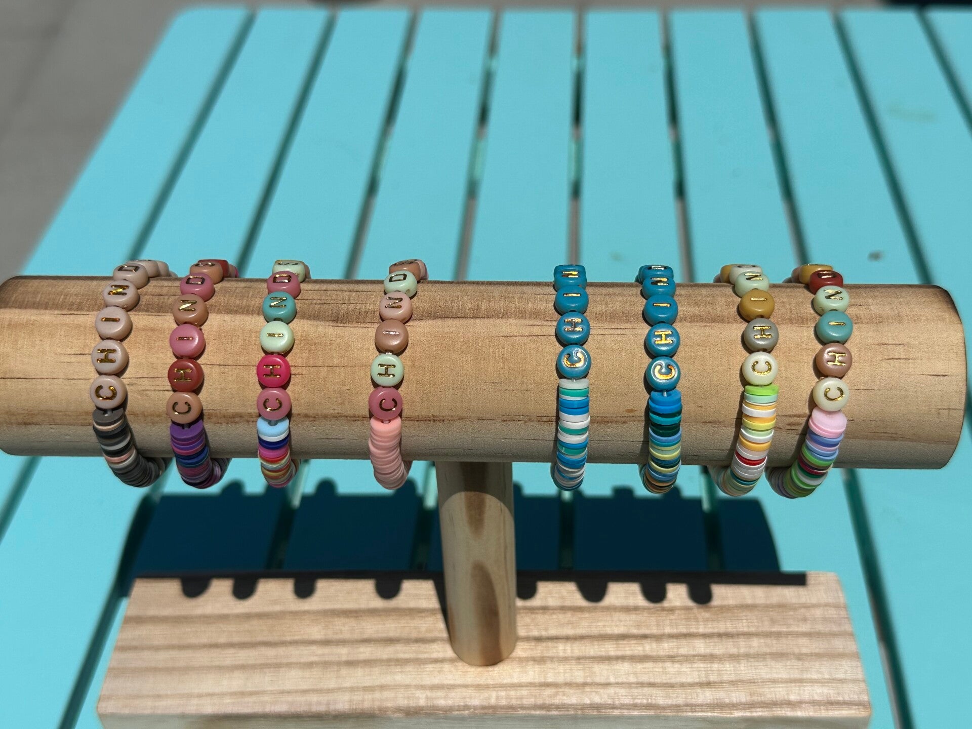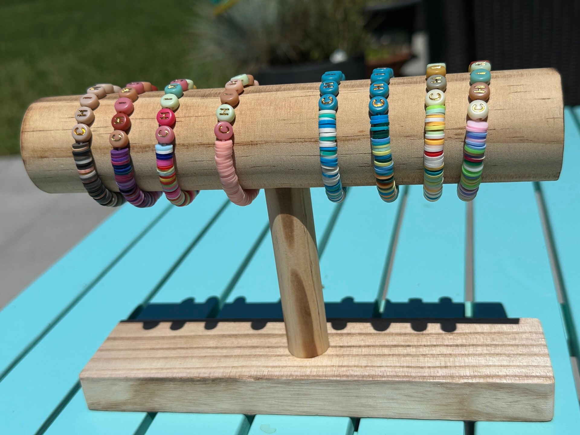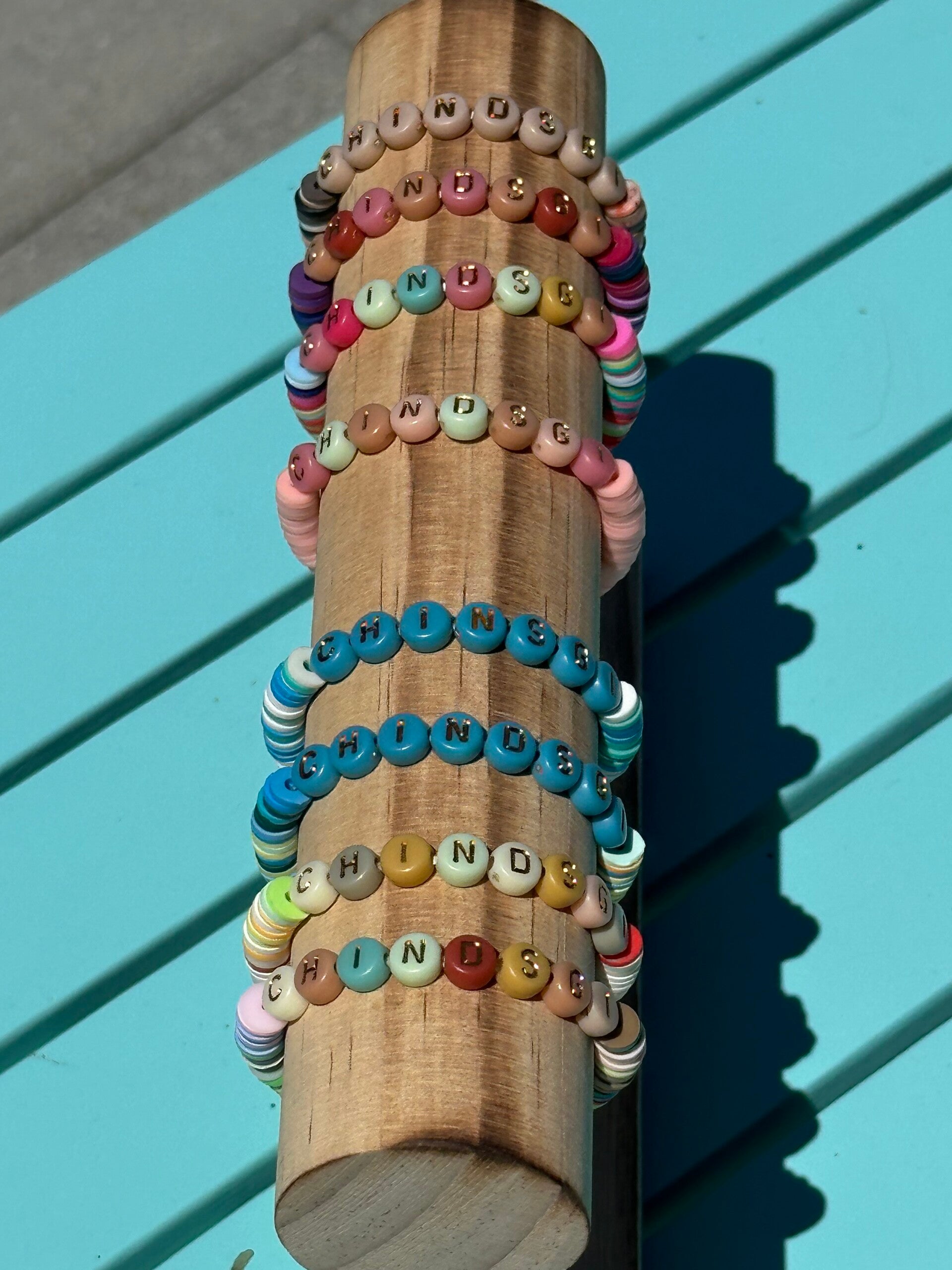 Für unsere Kleinen habe ich wunderschöne, bunte Armbädli`s hergestellt aus Polymer mit flexiblen Band. Es kann auch statt "Chindsgi" der Name von Euren Kids bestellt werden.